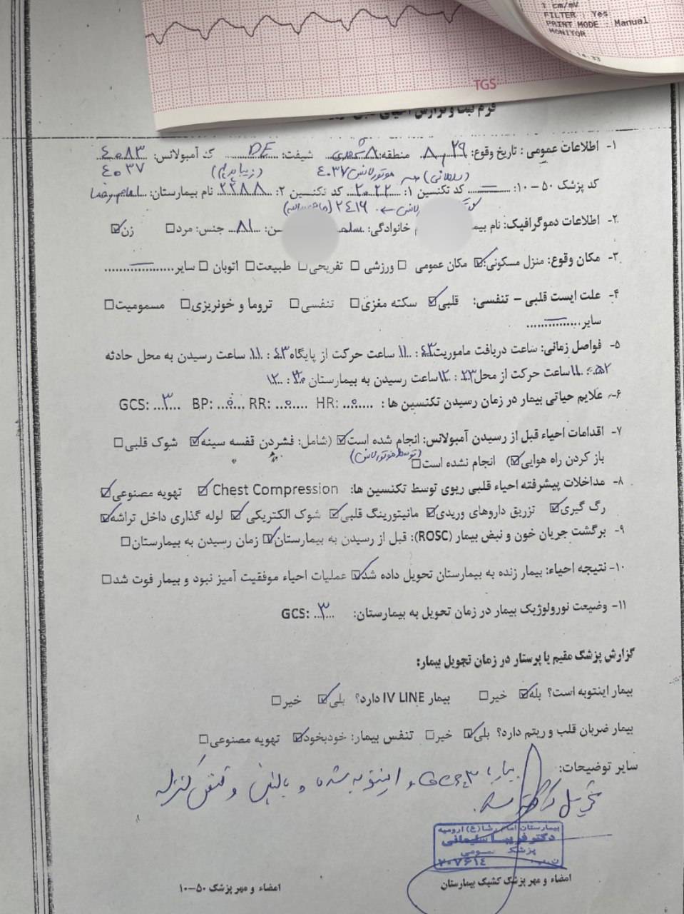 احیای موفق بیمار دچار ایست قلبی توسط تیم‌های موتورلانس و آمبولانس سبک اورژانس آذربایجان غربی